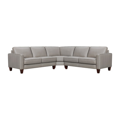 Made of the highest quality, supple leather, this gray leather l shaped three piece corner sectional will be the star of your space. The high-grade premium leather used makes your lounging luxuriously comfortable and adds an elegant appeal to your space. Solid colors give you lots of decorative options and are easy to work into your decor scheme. Square arms offer a comfy place to rest. A great showpiece for your room, this sectional is a must have. 33-inch H x 99-inch W x 99-inch D HomeRoots